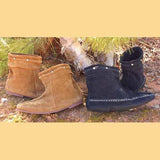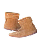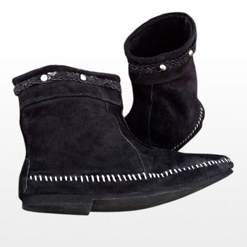 The Vikings were some of the world 's bravest and most ambitious seafarers. They lived bold and danger-filled lives, but their footwear was simple and understated. The Vikings preferred durable and simple boots that required minimal maintenance, considering they were always on the move.The style of Viking Boots pictured here could have been used for hundreds of years. The low-ankle design and soft suede exterior make them ideal boots for period outfits. The rubber sole and heel enable hours of comfortable wear.