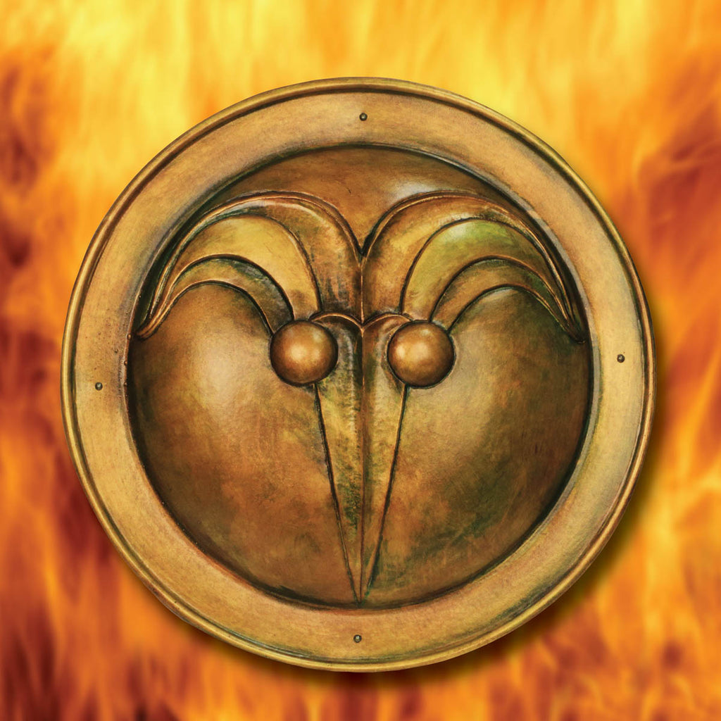 This amazing decorative wall plaque measures a full 21-1/4" in diameter and is made of a sturdy resin, then expertly painted to look like aged, patina bronze. Comes with a chain attached in the back, ready to hang. A great addition to your barbarian man cave!