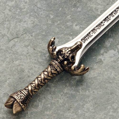 Capturing every detail from the 1982 Barbarian movie classic, this exacting scaled replica of The Father's Sword is sized perfectly for display. Cast in solid metal and plated for a handsome adventure worn look, it includes wooden presentation box. Made in Spain.