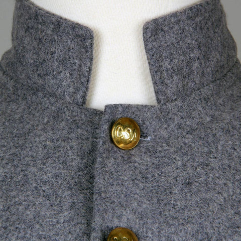 This Confederate shell jacket is made from high quality medium grey wool. Features a seven button front. CSA marked brass buttons. For regular wear or Civil War re-enactments.