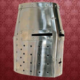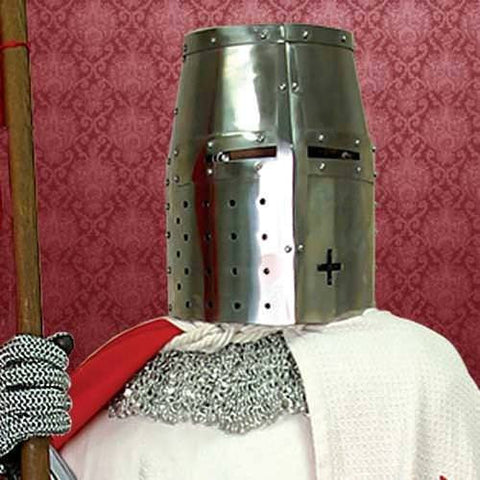 This stunning helmet was developed early in the 12th century and became a fixture of the medieval fighting man. It lasted for around three centuries. Worn over a mail coif and padding, this helmet has menacing, narrow eye slits for intimidation and maximum protection. It is crafted by Windlass Steelcrafts of 18-gauge steel.