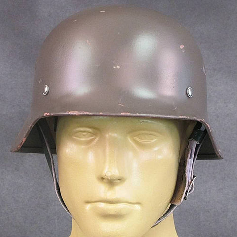 This is a rare chance to own a genuine military issue German made M40 WWII style helmet for the almost the same price as a reproduction. There is simply no comparison to a genuine combat helmet! These WWII helmet stocks are from the government of Finland and are 100% genuine German manufactured WWII type M40 steel combat helmets that were produced by German WWII helmet manufacturer Hans Römer Fabrik from Neu-Ulm (Donau-Freiberg).