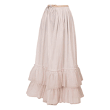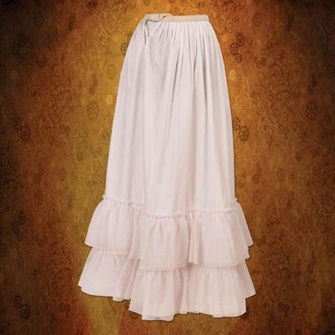This floor length petticoat is a great undergarment that will give any period gown a rich fullness. Two deep layers of stiffener at the hem allow any garment to hang correctly. Adjustable waistband allows for a wide variety of waist sizes.