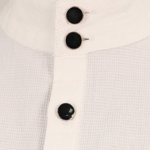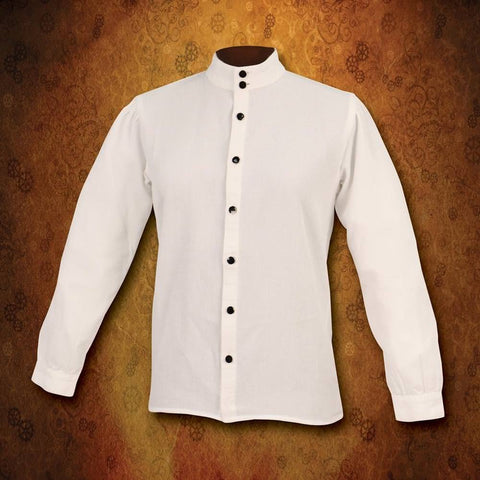 Our crisp white Hyde Street Shirt for Children is great for that turn-of-the-century look as well as steampunk ensembles. The shirt is made of a soft, white poly-cotton blend with faux onyx and silver buttons. The stand-up collar and black and silver enameled buttons make this an all-around dapper shirt.