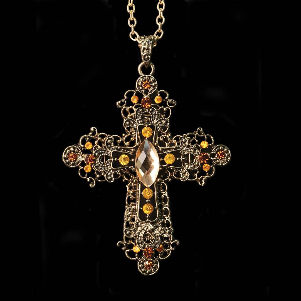 The royal court will be jealous of this stunning antique gold cross adorned with topaz crystals. A large faux marquise diamond is in the center.