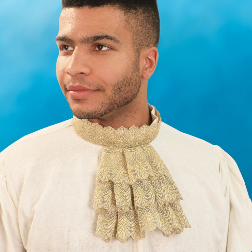 This Jabot & Cuff Set is a perfect way to finish off many of your period outfits. The period lace jabot has buttons in the back, making it adjustable to fit neck sizes 15" through 18-1/2". In addition, two matching lace cuffs are included, which easily button on your wrist or over an existing shirt.