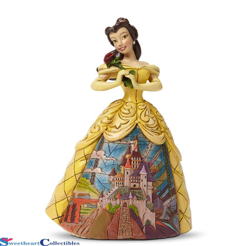 Beautiful Belle with her romantic castle artfully carved into her dress. Made from stone resin and with that characteristic rough carved wood look we've all come to love. Each is hand painted.