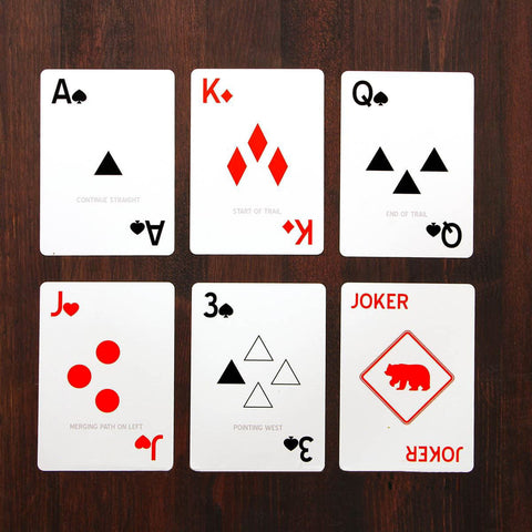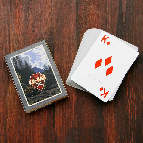 These KA-BAR trailblazing playing cards are water (and other beverage) resistant. The poker sized playing cards double as trail markers, letting you blaze your own trails.
