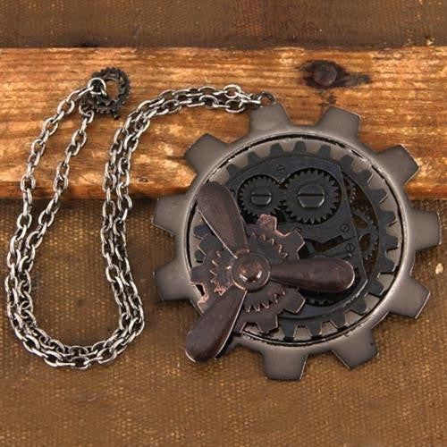 Closeout!A cool 3-D design has the propellers on this gear necklace looking like they're about to take off! An antique looking pendant, this necklace features overlapping layers of design adding a very unique, realistic look. Goes great with any of our steampunk outfits!
