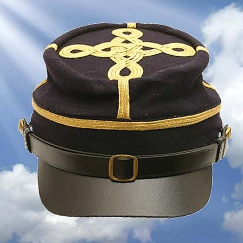 These officer's kepi's are made from quality wool. Features a leather visor, chin strap with brass buckle and 3 rows of gilt braid. Branch of service pins not included.