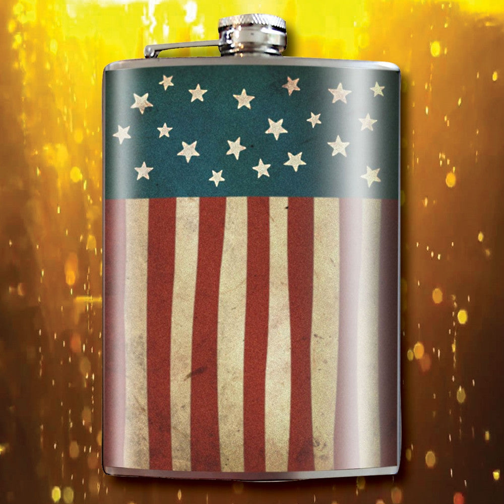 This Old Glory Flask is a must for those who love the stars and stripes. The design is printed on a high-quality vinyl label which is waterproof and alcohol proof! This hip flask is crafted of excellent quality stainless steel and features an attached screw down cap. Cleaning the flask is easy €“ just wipe it down with a damp cloth and dry. Note: Not dishwasher safe. The flask ships in a handy gift box that is perfect for wrapping.