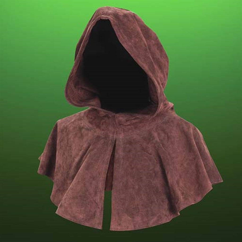 This dark brown, all suede outlaw hood is the perfect finishing touch for your Robin Hood costume. The full sized cowl features splits for ease of motion. One size fits most, can be worn up or down.