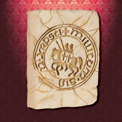 This exquisite Seal of the Knights Templar Wall Plaque looks like it was excavated from the wall of a Templar fortification. Made of a sturdy resin and infused with sand, then antiqued to look like castle stone. Can be displayed using a plate stand (not included) or hung on the wall utilizing the sturdy back hanger.  Cross of the Knights Templar  plaque also available.