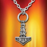 Thor 's Hammer Amulet Pendant is a token amulet to the Norse thunder god, Thor. Hand made in England of rich British pewter, it comes with 21" chain with clasp. In Viking times it was worn discretely at all times to ensure protection, strength, healing and fertility.