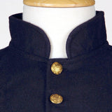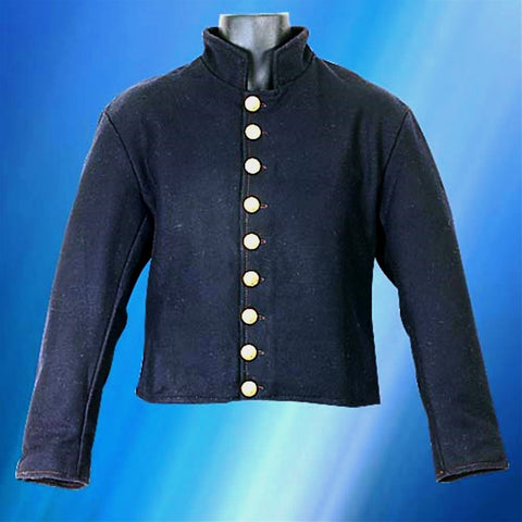 This high-quality Civil War jacket is authentically patterned, ideal for collectors, history buffs and reenactors who want well-made, durable, accurate copies from a critical time in our nation 's history. This jacket is crafted of quality dark blue wool and has a nine-eagle-button front. Note: Does not come with shoulder boards.